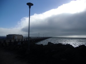 Late summer weather in the Bay Area is chosen by the Pacific. How much of the region would we like to engulf in clouds today? I’ve found many beautiful places to wander already. I’m drawn to them. I will spend time in nature every day if I can. This morning I walked out onto the pier at the Berkeley Marina and strode directly into a new weather system.